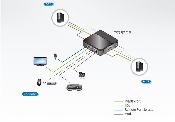 - 1x CS782DP 2-Port USB DisplayPort KVM Switch