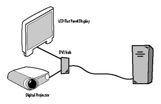 - Connects computers with DVI graphics to two DVI compatible monitors or projectors