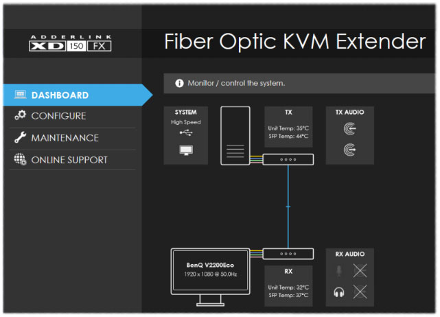 AdderLink INFINITY ALIF 4000 units can be either connected directly to each other or via a high speed (10GB) network. ALIF 4000 units provide two SFP cage ports for interface. Currently, these connections must be Fiber Channel over Ethernet (FCoE). A single fiber link (via SFP port 3) is sufficient to provide full 4K operation between ALIF4000 units. Where required, a second fiber link can be used (via SFP port 4) to provide link redundancy. 10Gb Ethernet Fiber SFP modules with LC type connectors are suitable up to distances of 300 Meters (Multi-mode) or 10KM (Single-mode) cable length.