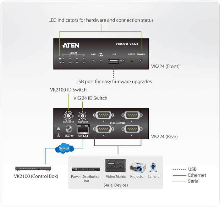 Port Selection OSD, Hotkey, Pushbutton, RS-232 Commands