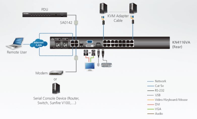 - 1x KN4116VA KVM over IP Switch