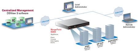 The Avocent MergePoint 5200 management gateway appliance enables IT professionals to perform secure, remote server management from any location using embedded server management technologies, specifically, Intelligent Platform Management Interface (IPMI), Dell Remote Access Cards (DRAC) and HP Integrated Lights Out (iLO).