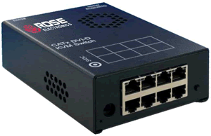 The Rose ORS-LC08TP is an 8 port KVM/Crosspoint Switch for CATX, DVI, USB HID. This switch is a multifunction device that configures easily for use as a: KVM Switch, Crosspoint Switch, or Multiplex Repeater. It supports USB keyboard and mouse. It also extends distances up to: 800ft. (120 m) over CAT5, 1350ft. (200 m) over multimode 62.5μ, 2600ft. (400 m) over multimode 50μ, 66,000ft. (10 km) over singlemode 9μ, and Optional serial and audio.
