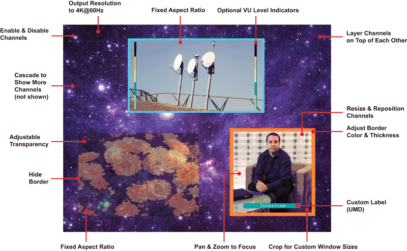 - Cascade multiviewers to display video from any number of video sources on one screen.