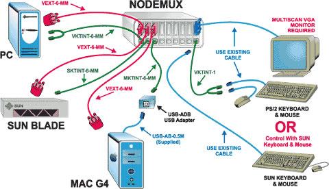 - USB-enabled SUN or MAC computers may be connected by using a USB-SUN or USB-ADB adapter.