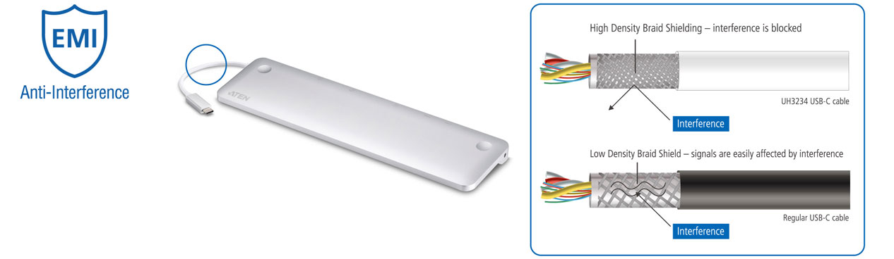 Increase cable braid shielding density by 85% to ensure reliable and secured connectivity and operation from signal interference by other devices.
