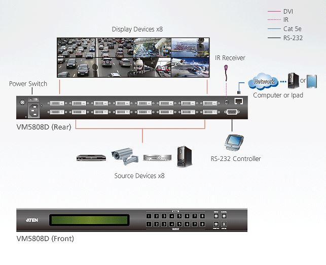 - 1x VM5808D 8 x 8 DVI Matrix Switch with Scaler