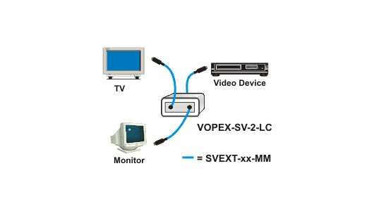 These S-video splitters enable two S-video monitors to be driven by a single video source. The same image is displayed on two monitors.