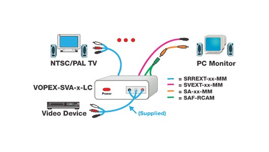 The VOPEX-SVA-8-LC S-Video/Audio splitter accepts S-Video and audio signals and broadcasts them to multiple output displays with support for numerous devices (TV, monitor, home theater system, projector, etc.). The same image is displayed on all outputs with no degradation, and the same audio is sent to all speakers.